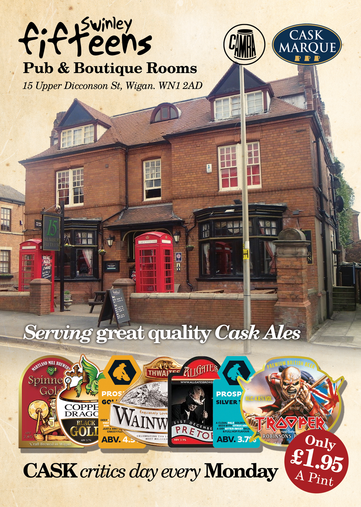 Fifteens Swinley gives you the chance to try and range of cask ales at just £1.95 a pint Every Monday and why not tag on to the Fifteens Cask Ale Trail